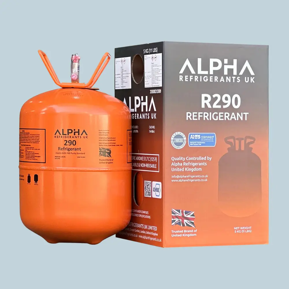 R290 (Propane) is an eco-friendly, high-efficiency refrigerant used in domestic and commercial refrigeration systems, offering excellent cooling performance with very low environmental impact.